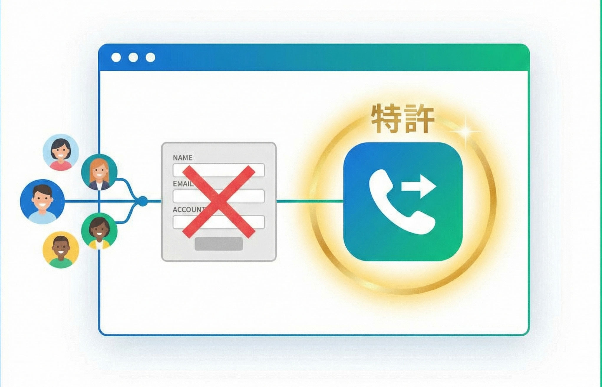 「ONE CALL」の通話システムは事前登録もメールアドレスやアカウントなどの 「登録情報」なしで通話ができる当社独自の特許取得技術です(特許第7824600号)